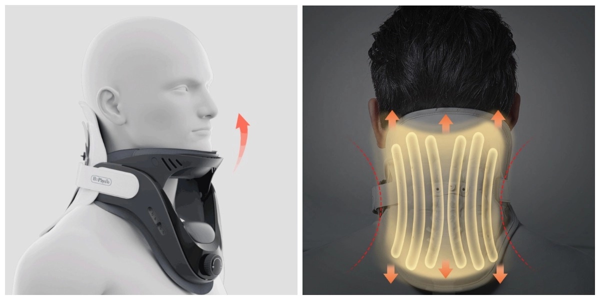 Конструкция имеет универсальный размер, который можно отрегулировать и вес 320 грамм. Для поддержания естественных изгибов позвоночника устройство снабжено прокладкой, которая накачивается насосом и принимает физиологическую для каждого пользователя позу. Высота подбородка также регулируется индивидуально.