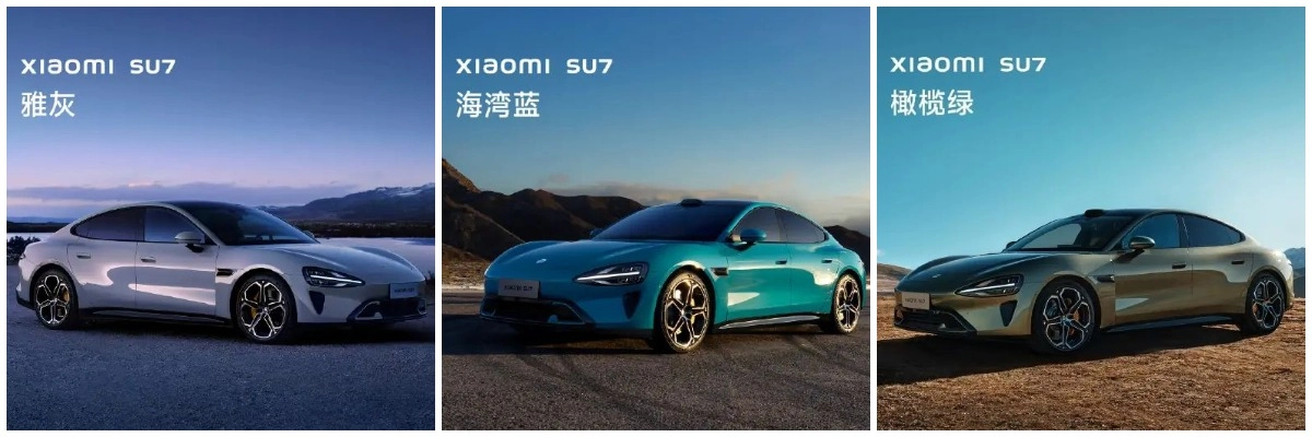 Xiaomi SU7 представлен в трех цветах: цвет морской воды, цвет серых скал и оливково-зеленый с отсылкой к утонченной красоте природы.