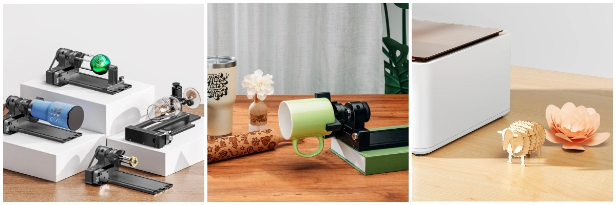 Он поддерживает более 20 материалов для нанесения рисунков, имеет собственную коллекцию шаблонов, позволяет сочетать лазерную гравировку и обрезку ножом. Точность нанесения рисунка 0,01 мм.