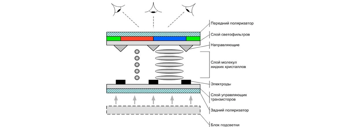 IPS технология была создана для ЖК-экранов. Она была создана для решения ряда проблем, возникающих с ЖК-телевизорами еще в 1980-х годах. Но активно используется и сегодня, в основном, из-за своей низкой стоимости. IPS экран состоит из панелей с жидкими кристаллами между ними и дополнительного слоя подсветки. Благодаря этой подсветке у экранов хороший угол обзора и хорошая яркость при солнечном свете. В отличие от OLED-панелей черные участки не снижают расход батареи, панель просто снижает яркость подсветки, но не отключает ее. IPS-технология не позволяет использовать эти дисплеи в моделях со складными экранами.