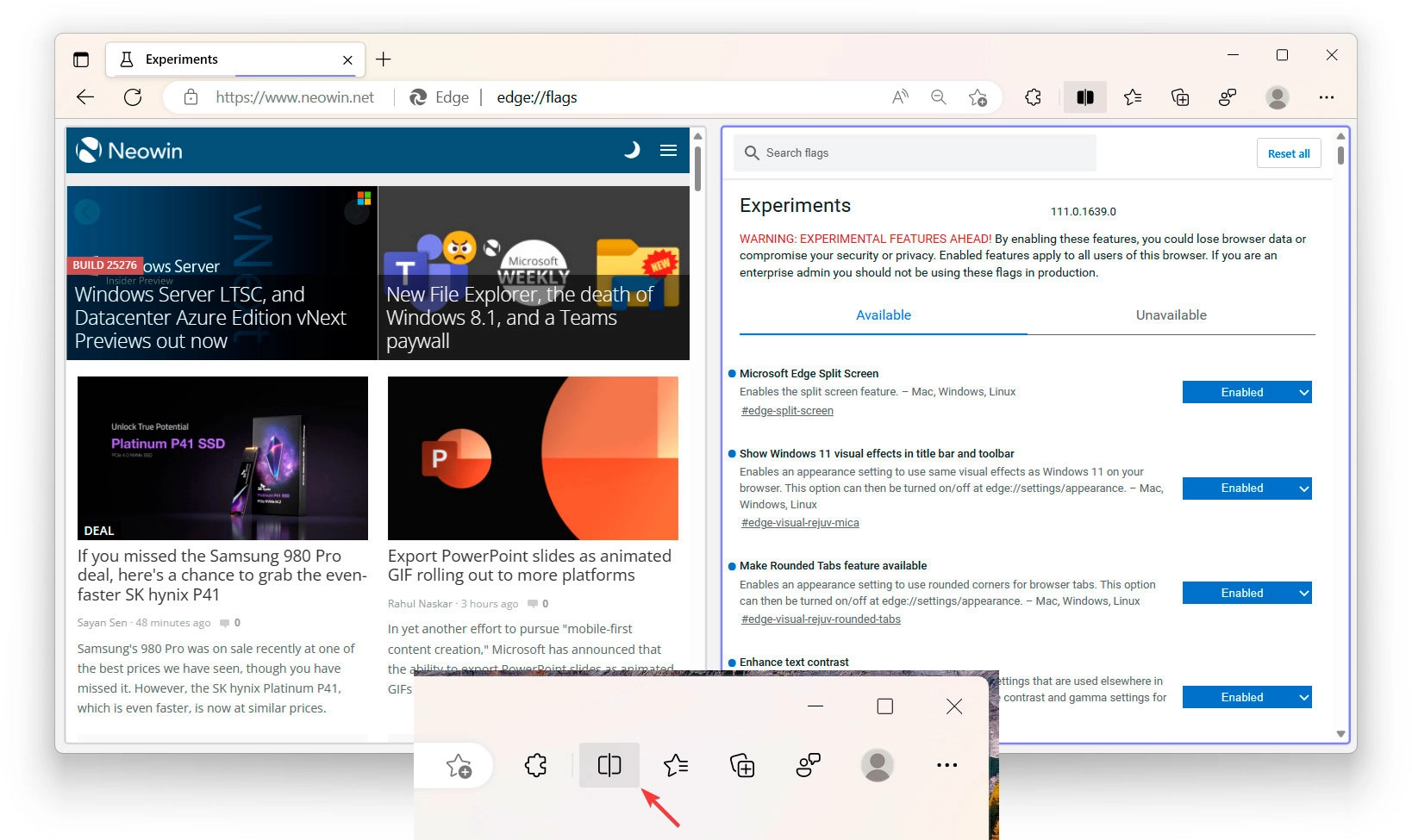 В Microsoft Edge появилась настройка позволяющая открывать два сайта в одном окне браузера рядом с друг другом. Функция получила название Microsoft Edge Split Screen и пока доступна только в тестовых версиях браузера.