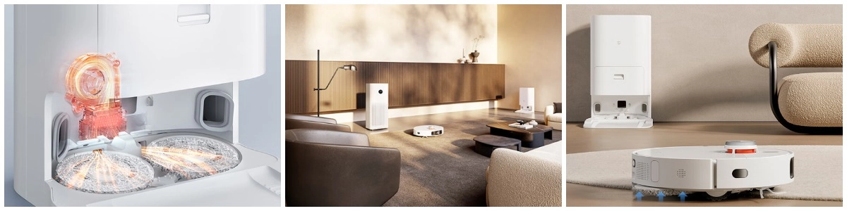 Пылесос легко интегрируется в систему умного дома, что позволяет создавать различные сценарии уборки с подключением других устройств, таких как очистители воздуха, освещение, умные замки и т.д. Функция автоподнятия швабры помогает пылесосу избежать вторичного загрязнения вымытого пола и намокания ковров.