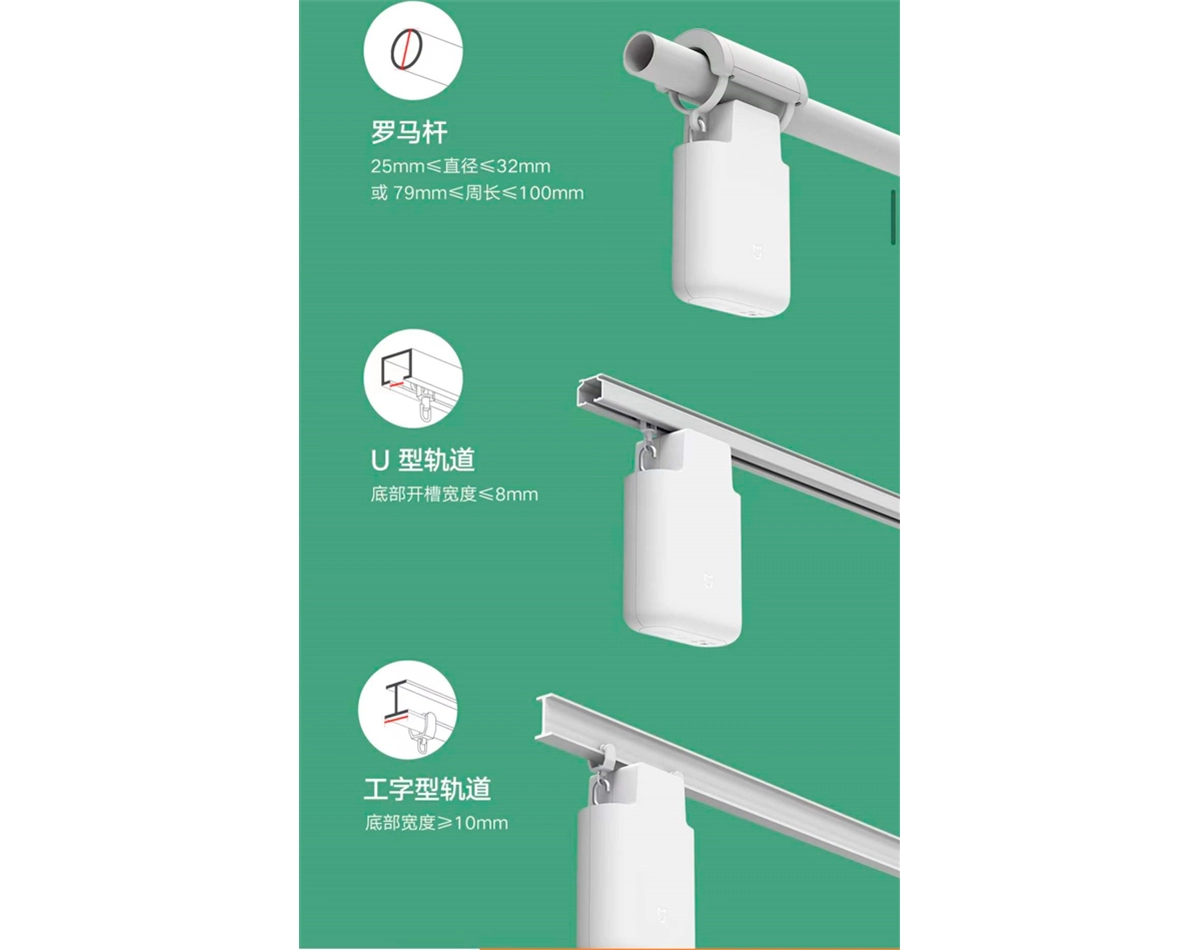 Поддерживаются U-образные карнизы, I-карнизы и классические римские. Устройство быстро устанавливается и моментально превращает обычные шторы в умные.