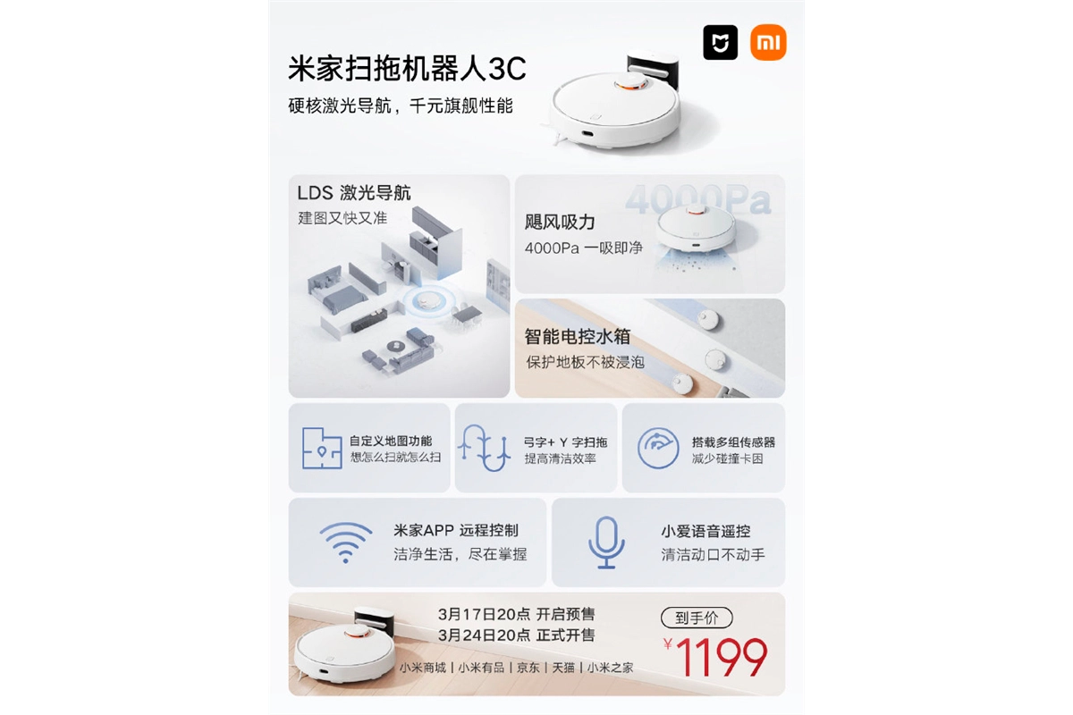 Недавно в Китае представили новую версию бюджетного робота-пылесоса MIJIA Robot Vacuum Cleaner 3C. У новинки повышенная мощность всасывания и комбинированный контейнер для мусора и воды.