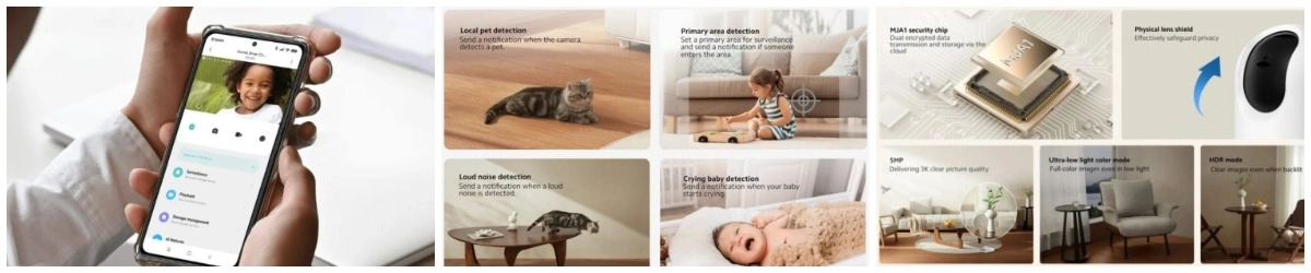 Xiaomi Smart Camera C500 Pro оснащена технологией распознавания людей и животных. Она может следовать за их перемещением, когда объект находится в поле зрения камеры. Искусственный интеллект может распознавать детский плач и отправлять оповещение на смартфон родителя, так что домашнюю камеру можно использовать и в качестве видео-няни.