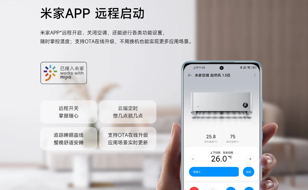 Mijia Air Conditioner Natural Wind интегрируется в систему умного дома и поддерживает голосовое управление. Также в приложении сплит напомнит о необходимости замены антибактериальных фильтров.