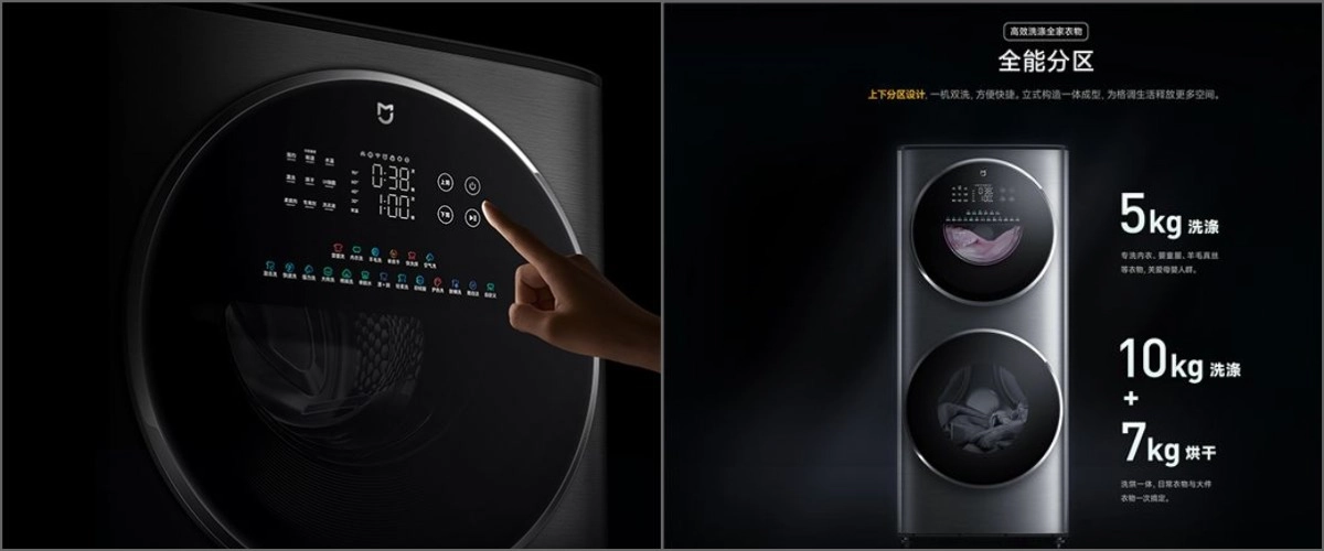 Компания Xiaomi решила не останавливаться на мобильных гаджетах и выпустила 11 августа крупногабаритную новинку — стирально-сушильную машину Xiaomi MIJIA Partition. Машинка представляет собой литую конструкцию из двух отсеков для стирки белья. Верхний отсек предназначен для стирки деликатного и детского белья и вмещает 5 кг, а нижний позволяет стирать большие вещи суммарным весом до 10 кг. Нижний отсек также выполняет роль сушильной машины. Сушить можно одновременно до 7 кг белья.