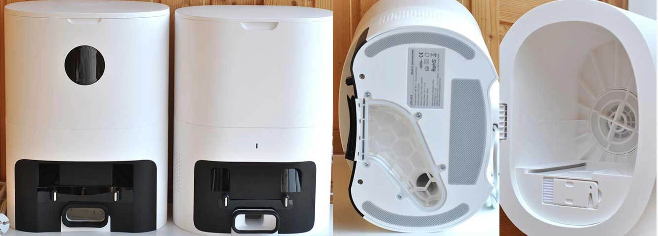 Док-станция довольно внушительных размеров с индикаторами и проводным подключением. По сути, это большое ведро в которое робот-пылесос сбрасывает весь мусор после уборки. Большой мешок для пыли постепенно заполняется мусором и в конце просто запечатывается для утилизации. Такая док-станция находка для тех, кто почти не бывает дома или имеет аллергию на пыль. Контакт с пылью сведен к нулю.