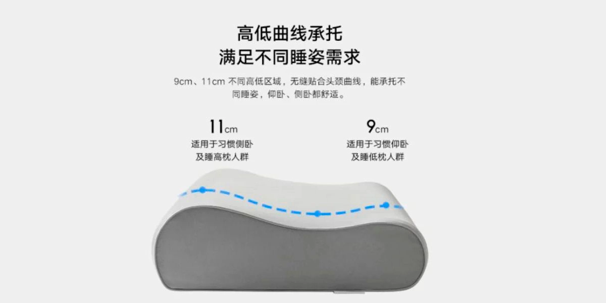 Подушка Mijia Memory Foam Neck Pillow Pro получила наполнитель из специальной пены с эффектом памяти, который равномерно распределяет давление и обеспечивает оптимальную поддержку. Конструкция подушки включает в себя два валика высотой 9 см и 11 см, а сама подушка получила увеличенный размер — 56 см в длину и 35 см в ширину.