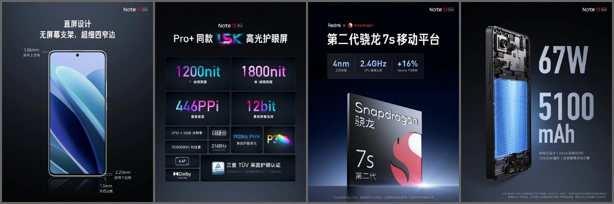 На презентации 21 сентября 2023 года бренд Redmi был представлен смартфон Redmi Note 13 Pro. Он вышел на базе платформы Qualcomm Snapdragon 7s Gen 2. Новинка порадует любителей плоских дисплеем. У него именно такой экран и ультратонкие рамки.