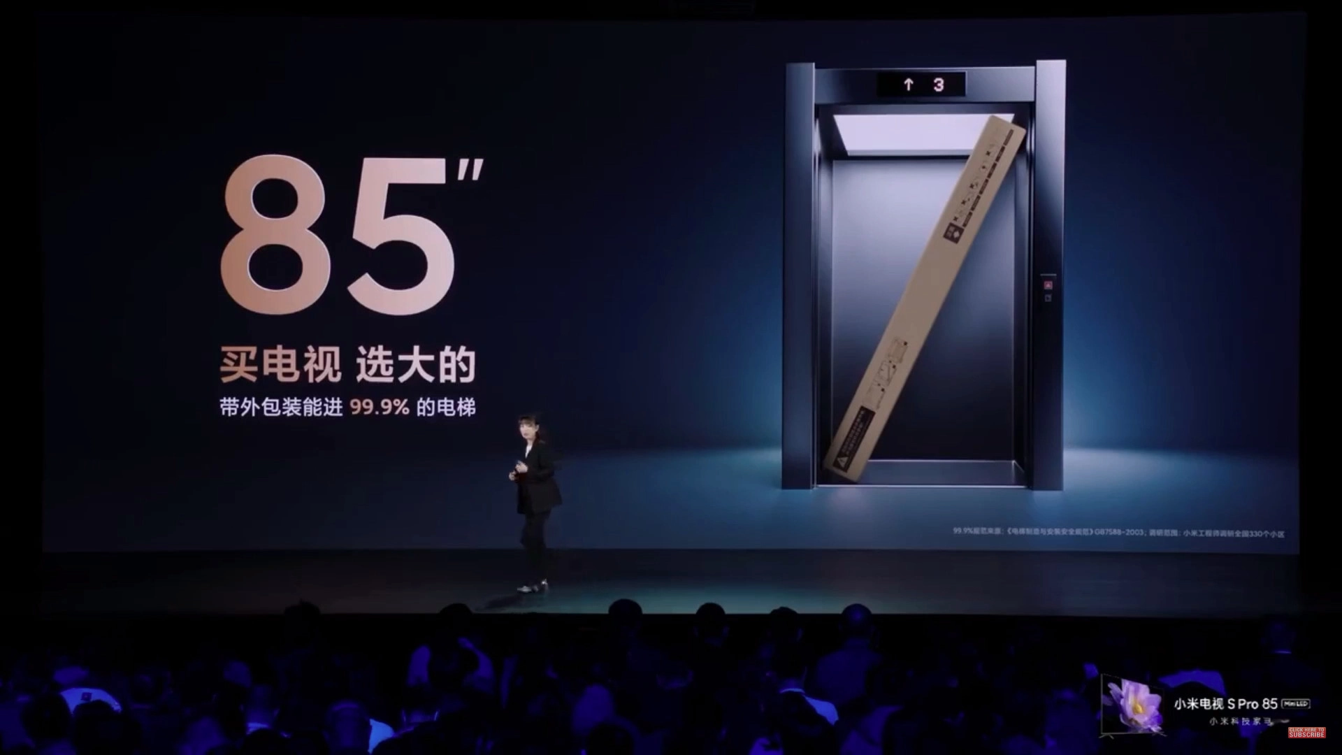 Отдельный акцент был сделан на то, что упаковка с телевизором помещается в стандартный китайский лифт. Надеемся, что в наш он также войдет по диагонали.