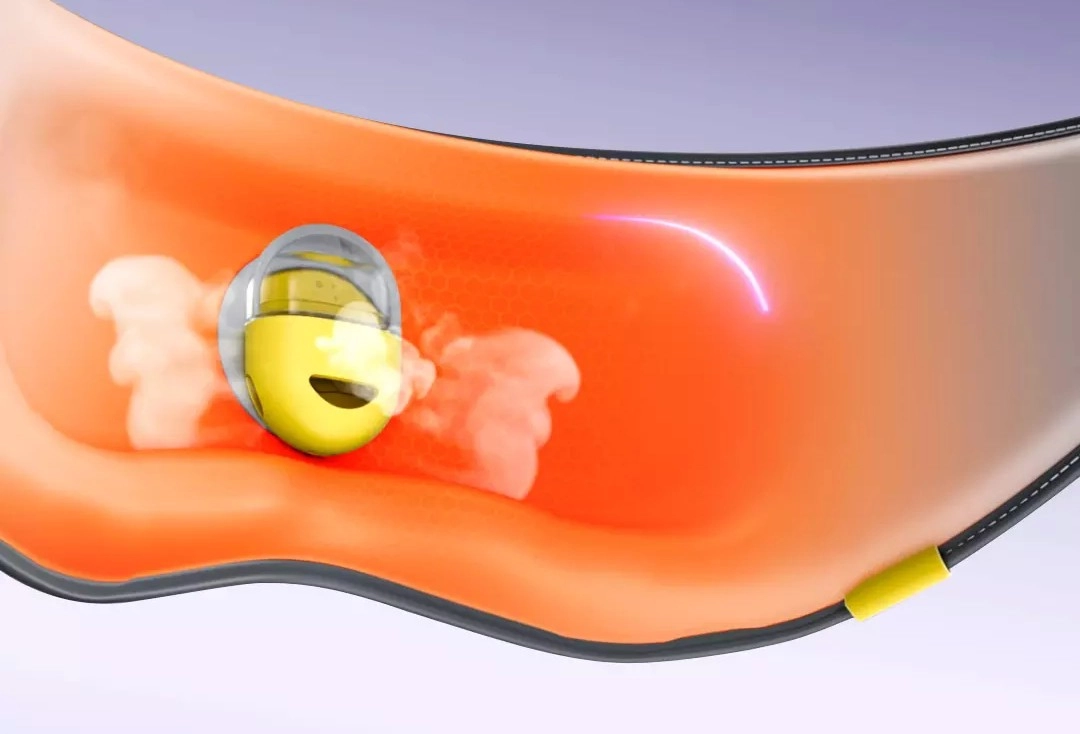 Маску можно использовать и для сна, и для компресса, и для массажа. Во-первых, она нагревается и превращается в 3D-компресс, а во-вторых, оснащена специальным резервуаром-парогенератором, который увлажняет кожу и глаза. Размер распыляемых частиц не превышает 1,7 мкм. Встроенный вибромотор вращается со скоростью 8000 оборотов в минуту, расслабляет и снимает отечность. Всего в маске находится 4 независимых двигателя для равномерного массажа.