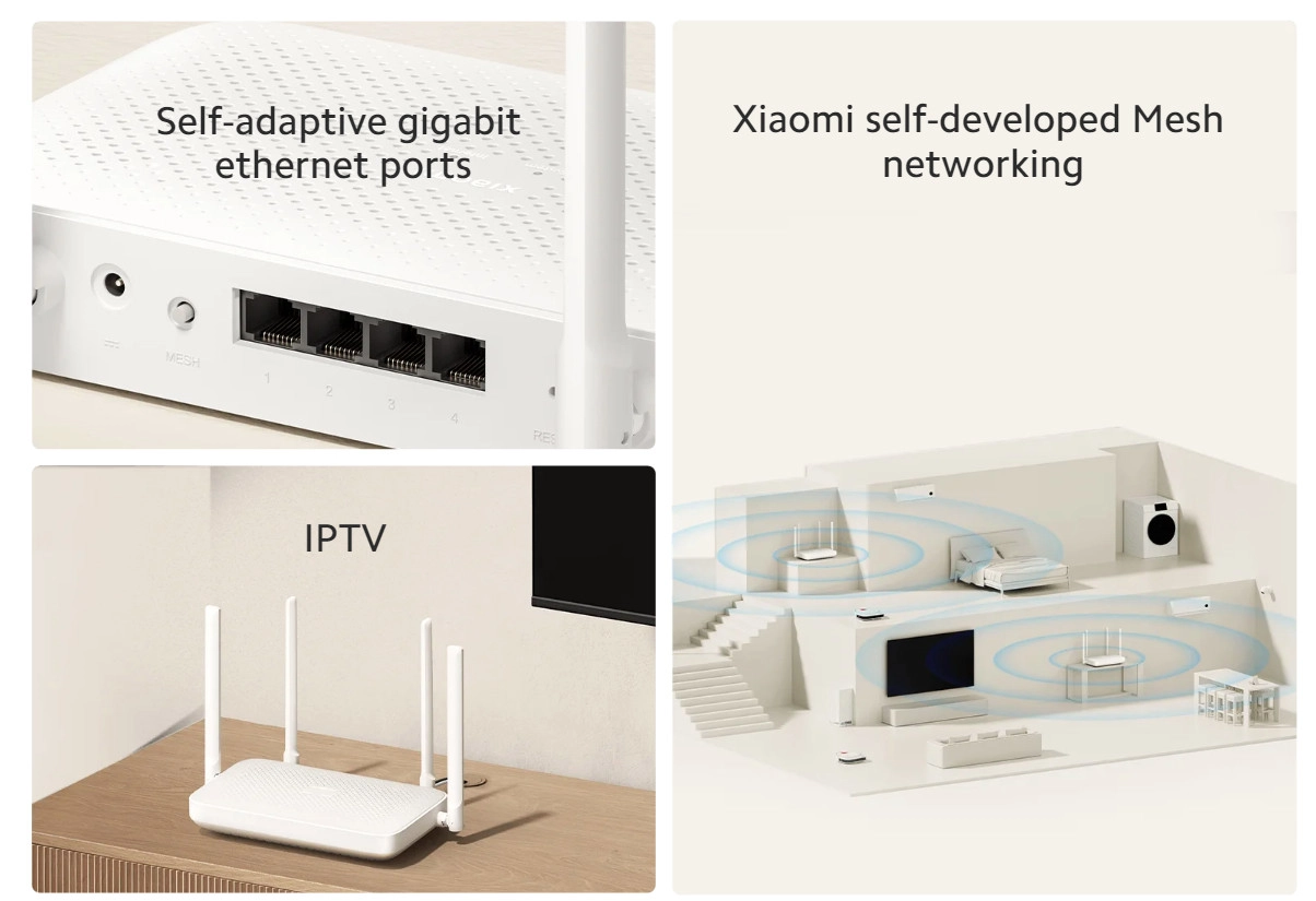 Роутер имеет поддержку Mesh-сетей и обеспечивает широкое покрытие и надежное соединение. Xiaomi AX1500 поддерживает IP TV и может выделять отдельный канал для ускорения игр на смартфонах, приставках и ноутбуках.