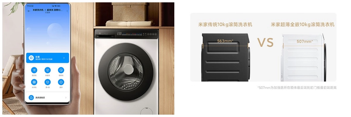Компания Xiaomi представила стиральную машину с фронтальной загрузкой вместимостью 10 кг с глубиной 507 мм и диаметром люка 525 мм. У стиральной машины двигатель прямого привода, яркий сенсорный дисплей и множество программ стирки.