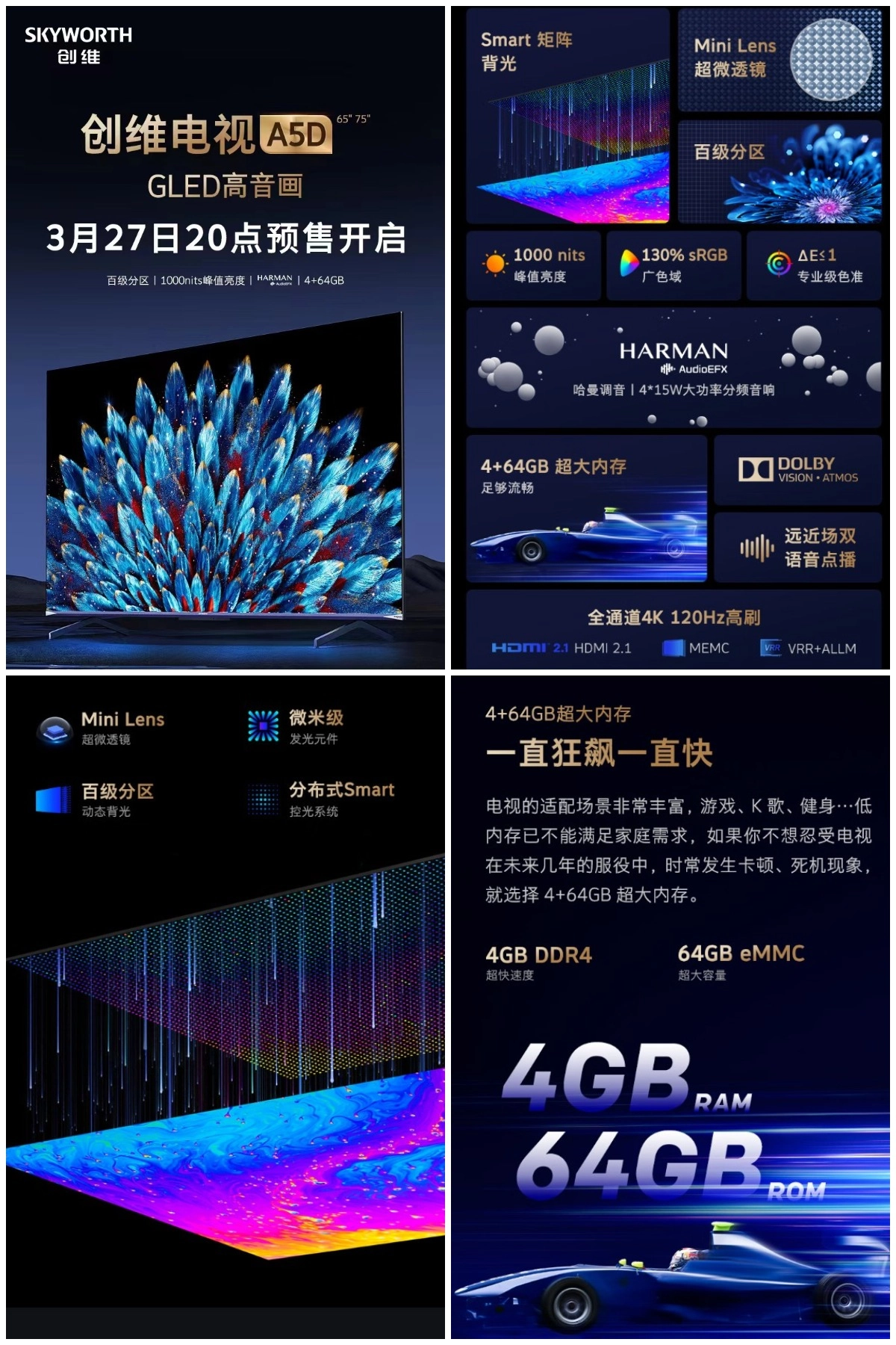 27 марта 2023 компания Skyworth выпустила новый телевизор с высоким качеством изображения и звука Skyworth A5D GLED. 4K телевизор с диагональю 65" предлагается за 582$, а с диагональю 75" за 785$.