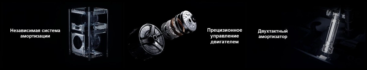 Два барабана стиральной машины объединены в одном корпусе, у них два отдельных двигателя прямого привода, но общая система амортизации. Производитель заверяет, что система амортизации, которая используется в Xiaomi Mijia Partition Washing Drying Machine взяла за основу принципы, по которым строятся высотные здания в сейсмоопасных регионах. Кстати, гарантия на двигатели у производителя 10 лет.
