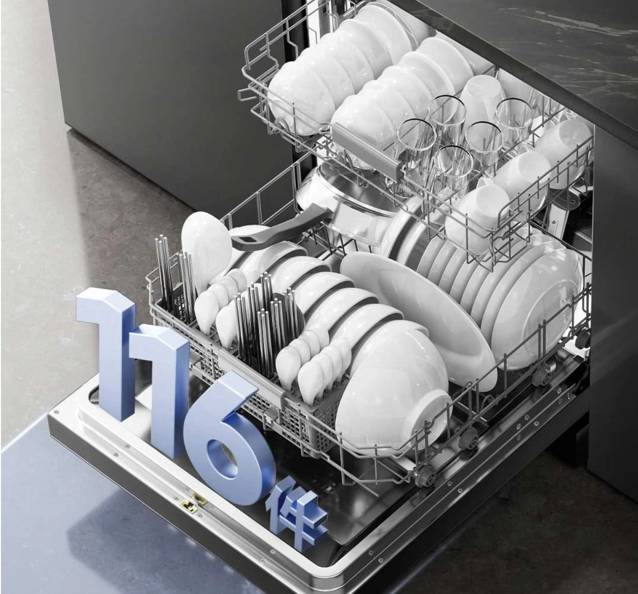Xiaomi Mijia smart single-in-one N1 — это встраиваемая посудомоечная машина с функцией сушки белья. В нее помещается 116 предметов посуды, и она оснащена 11 режимами мытья.