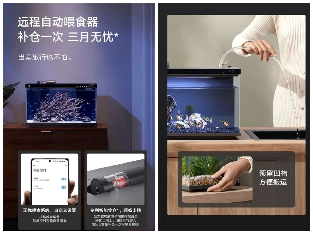 Компания Xiaomi выпустила новый умный аквариум вместимостью 20 литров. Он поддерживает автоматическое кормление рыбок, а благодаря мощной фильтрации может работать до 6 месяцев без замены воды.