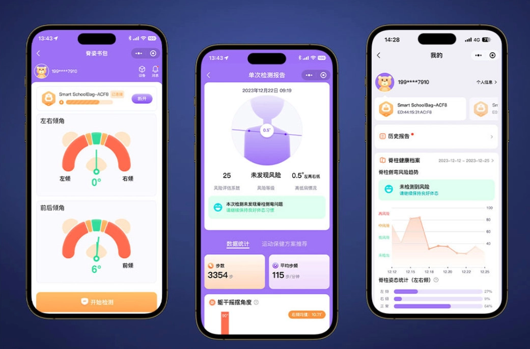 Умный рюкзак контролирует то, как ребенок носит рюкзак и отправляет отчет на смартфон родителя. В нем можно увидеть, как и сколько носился рюкзак, а также даются рекомендации о том, что нужно сделать для исправления ситуации.
