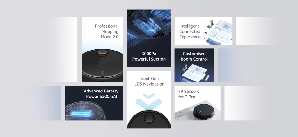 Новинка тщательнее моет пол, имитируя ручное протирание пола слева направо со скоростью 10000 вибраций в минуту. Мощность всасывания мусора также была увеличена. Прирост составил 43% и теперь максимальная сила всасывания 3000 Па. У пылесоса 19 высокочувствительных датчика, которые помогают ему избегать столкновения с предметами в доме и 6 дополнительных сенсоров. которые защищают от падения с лестниц.