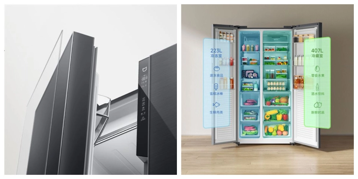 Внутри холодильника все организовано по последнему слову техники. Двухдверный «Side-by-Side» холодильник оснащен 20 полочками и 6 ящиками для хранения продуктов. Общая вместимость холодильника 630 литров, из них 407 литров это холодильная камера и 223 литра морозильная. Встроенный ультрафиолетовый модуль дезинфицирует и дезодорирует воздух внутри холодильника, предотвращая развитие патогенной микрофлоры и возникновение неприятных запахов.