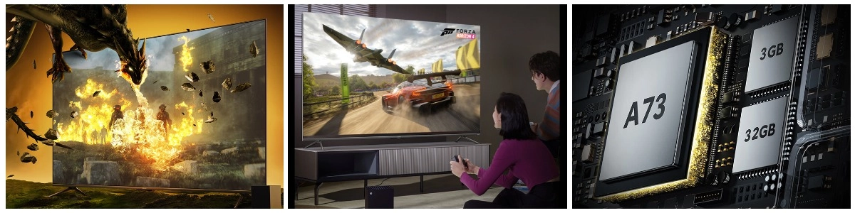 Под капотом новинки четырёхъядерный процессор Arm Cortex-A73, 3/32 ГБ памяти и 25 Вт объемного звучания. Пиковая яркость достигает 700 нит, а поддержка технологии MEMC позволяет сделать картинку на экране максимально плавной и детализированной.