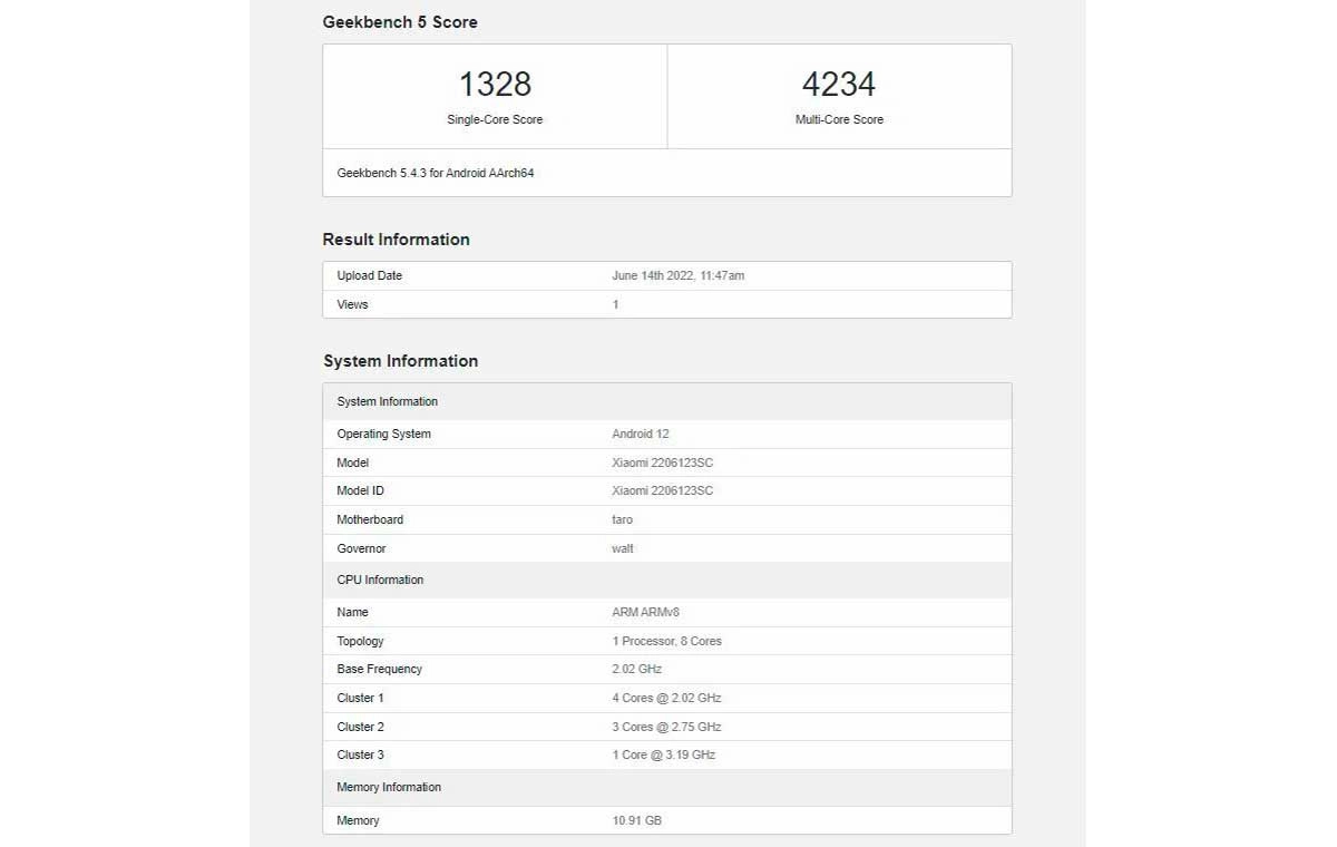 У бенчмарка Geekbench нашли информацию о новом смартфоне Xiaomi 12S. Смартфон станет продолжением флагманской линейки Xiaomi 12.