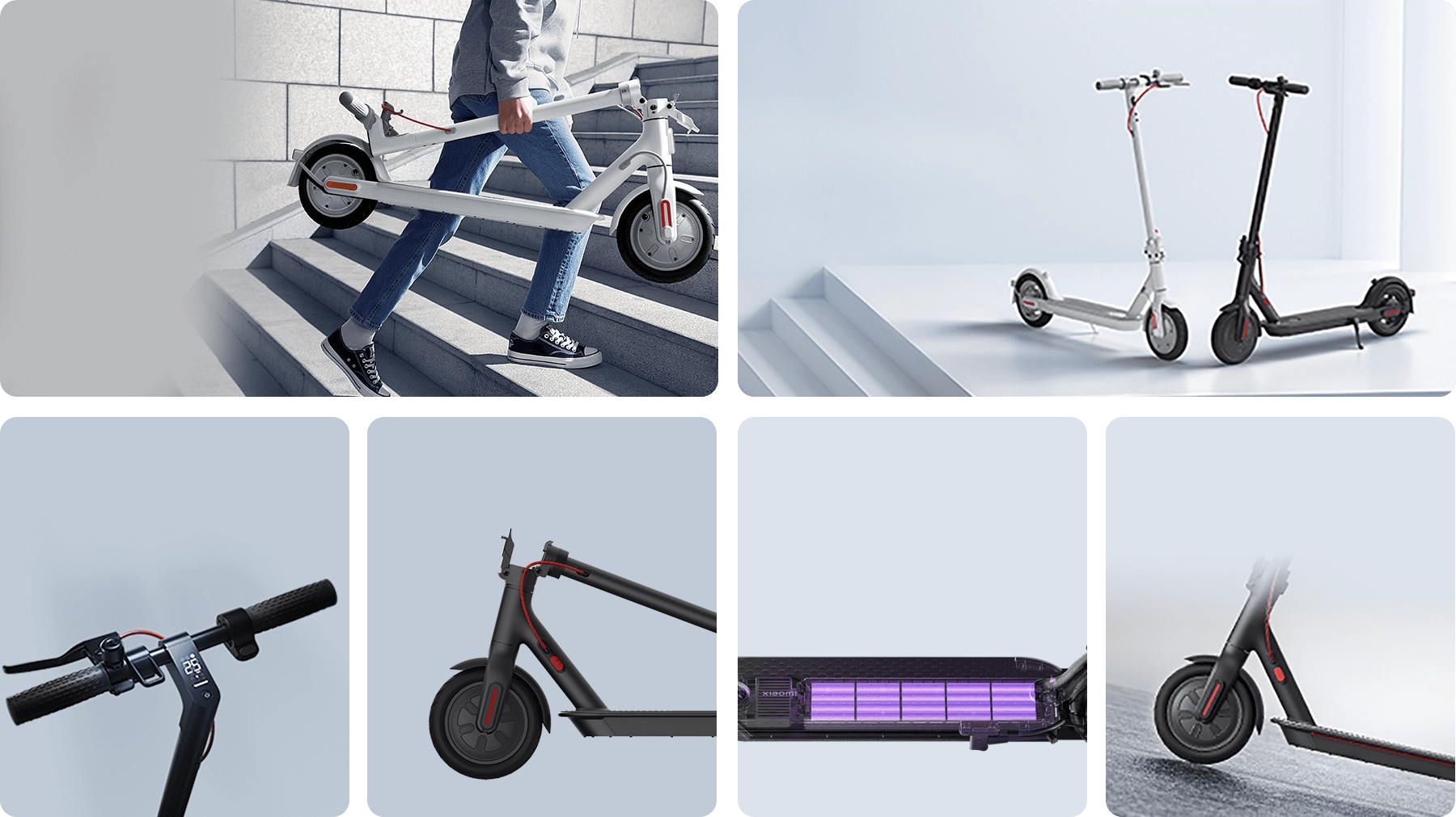 Как видно из названия Xiaomi Electric Scooter 3 Lite — это облегченная версия электросамоката. Его вес всего 13 кг, а для удобства транспортировки и хранения он складывается в трех местах. Несмотря на легкий вес у самоката приличный запас хода — 20 км и он способен разгоняться до 25 км/ч, а также преодолевать подъемы с уклоном до 14°.