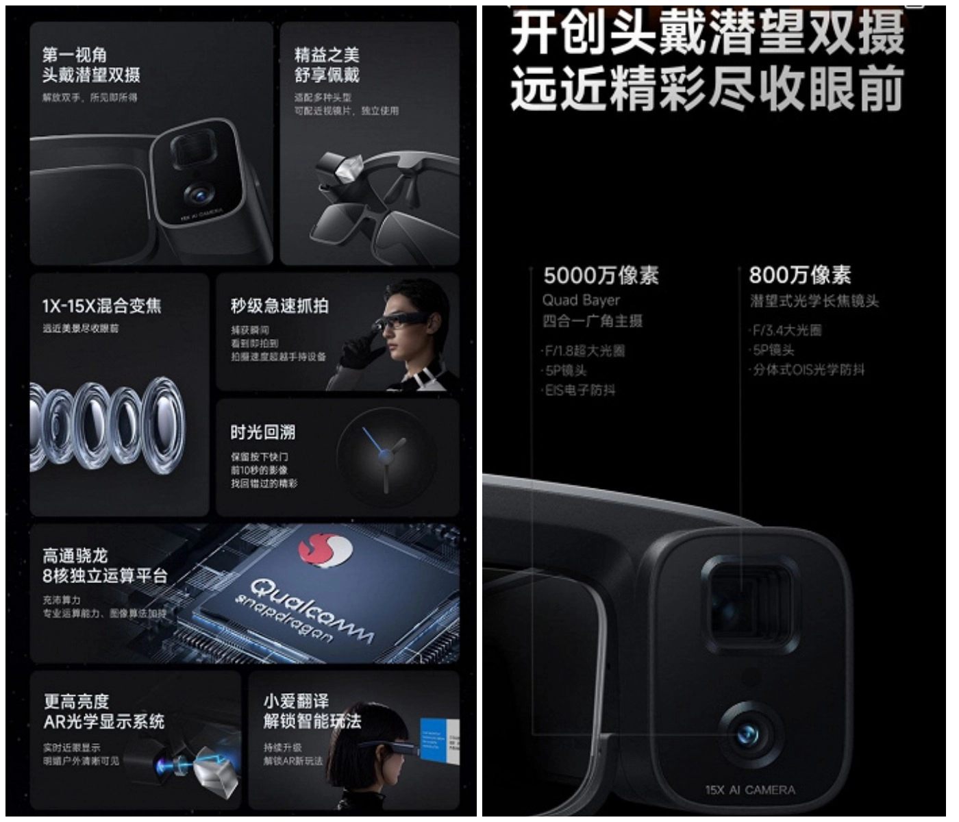У новинки двухмодульная камера с датчиками на 50 Мп и 8 Мп. Линзы совмещены с OLED-экраном от Sony с размером 0,23 дюйма.