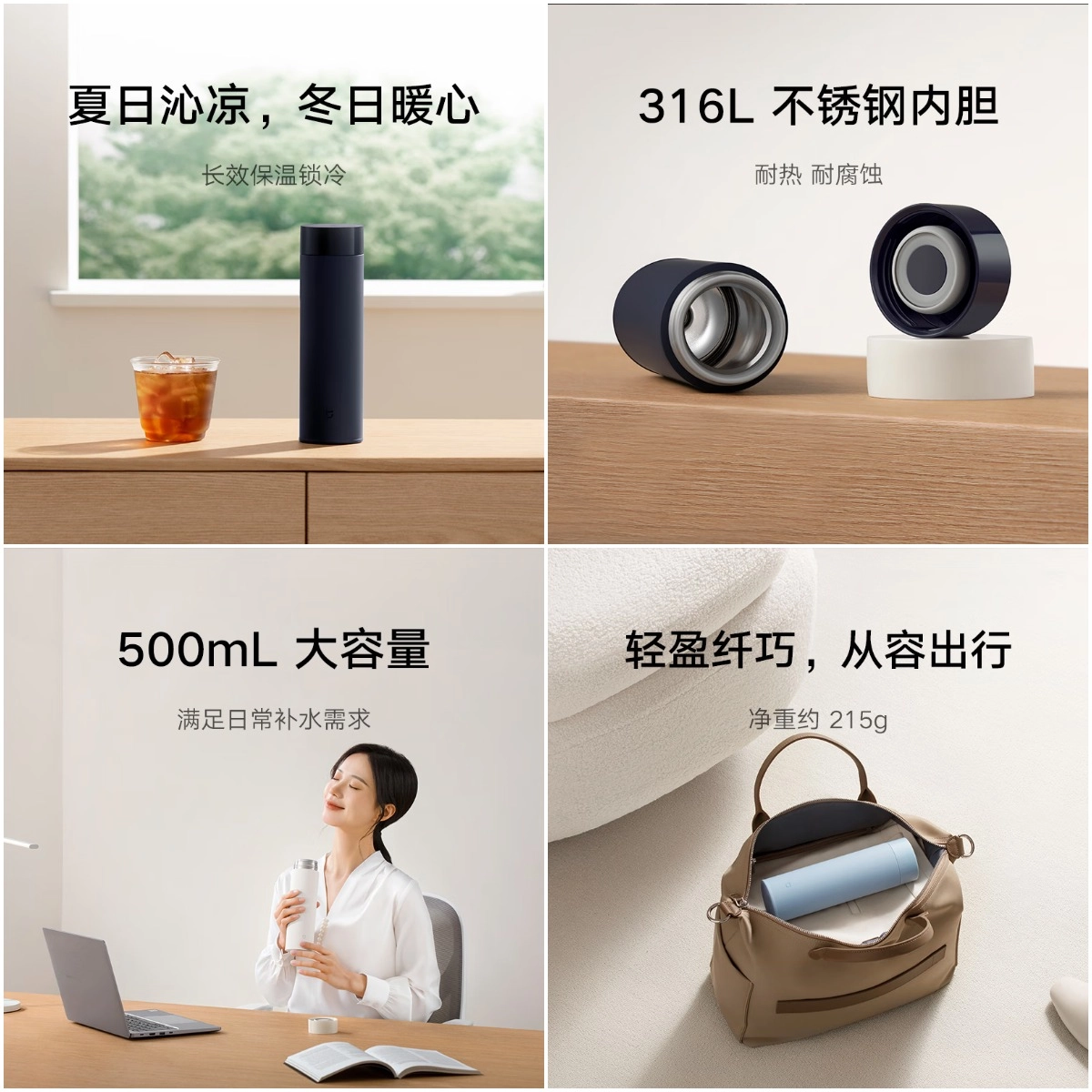 Компания Xiaomi выпустила небольшой термос весом 215 грамм, который вмещает до 500 мл жидкости. Термос Mijia Light Enjoy Thermal Flask оценен в 14$. Его размеры 65 х 217 мм.