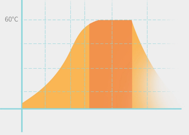 Для того, чтобы избежать возможного повреждения обуви температура нагрева не превышает 60°С. Это оптимальный температурный режим для быстрой и бережной сушки.