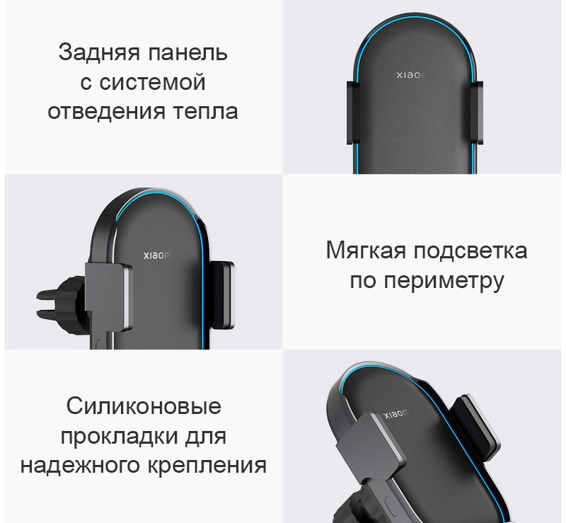 | Особенности | автоматическое открытие и закрытие боковых держателей, система охлаждения, максимальная ширина смартфона 84 мм, расстояние передачи заряда до 4 мм | |