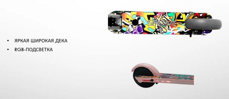У всех самокатов серии яркая широкая дека с нескользящим покрытием и RGB-подсветка для безопасного движения в темное время суток.