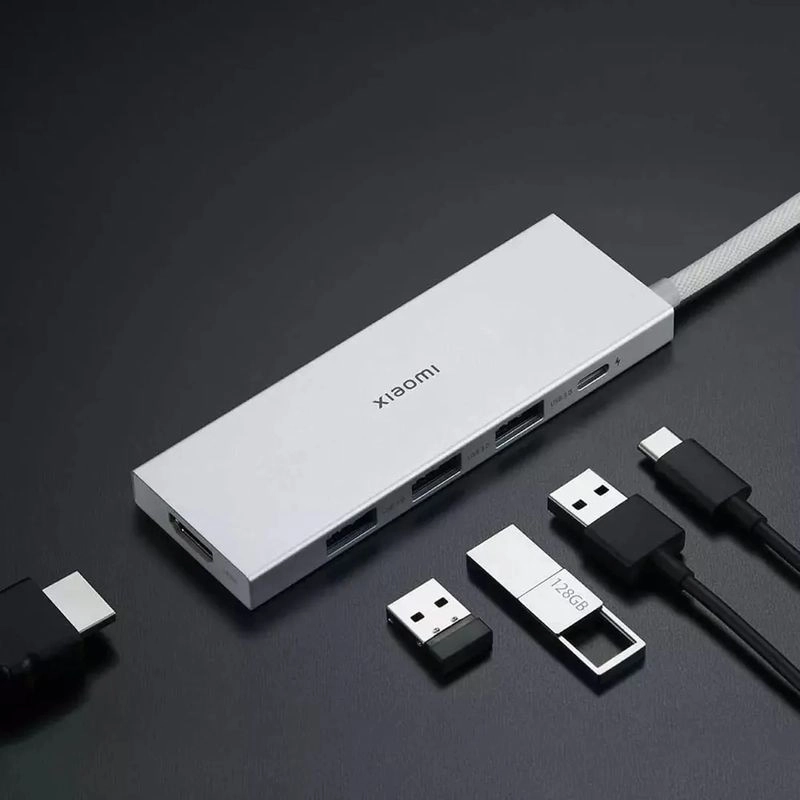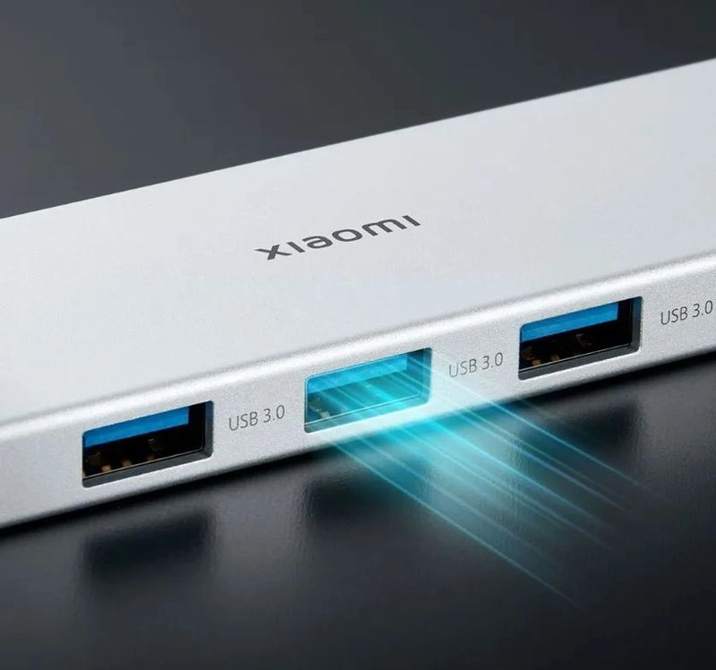 Док-станция Xiaomi 5 в 1 позволяет подключить устройства через USB Type-A, USB Type-C и HDMI интерфейс.