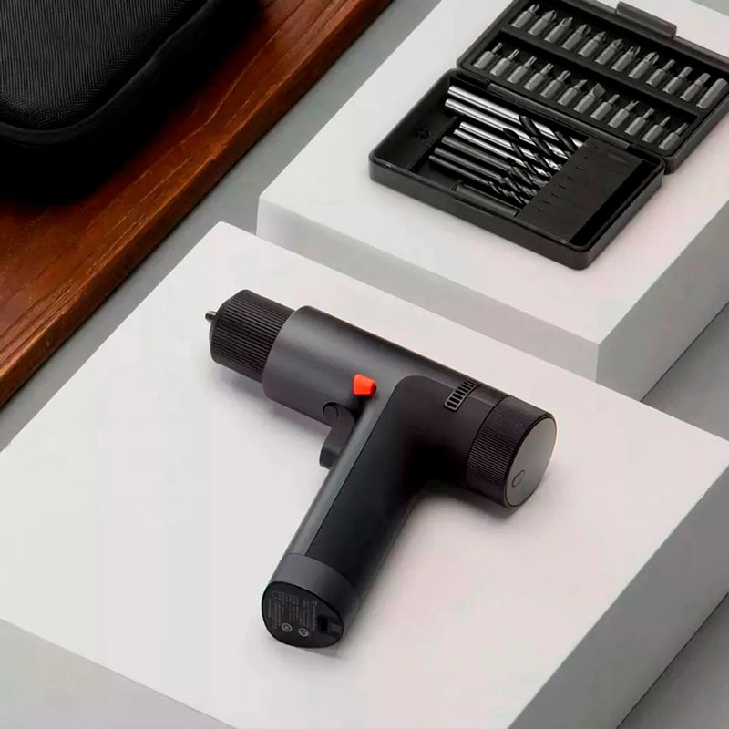 Электрическая дрель-шуруповерт Xiaomi Mijia Brushless Smart Home Electric Drill — поставляется в комплекте с битами и сверлами. Работает от аккумулятора и оснащена электронным дисплеем для отображения выбранных настроек.