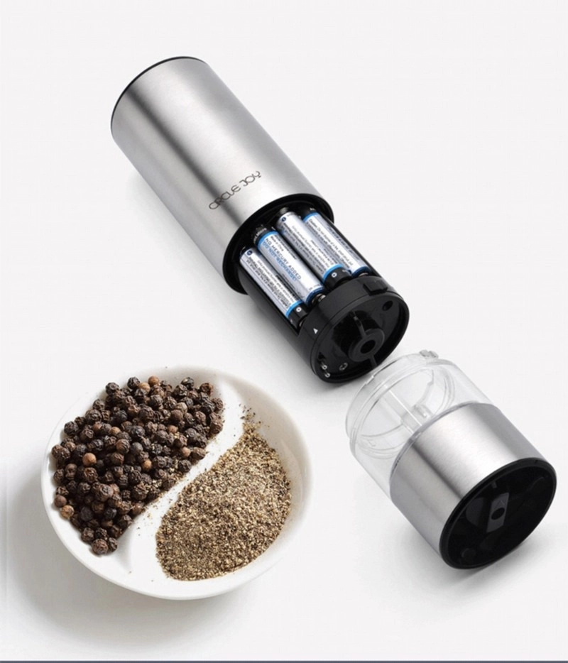 Мельница работает от 4 батареек AAA. За рабочий цикл один комплект батареек может измельчить до 65 граммов перца.