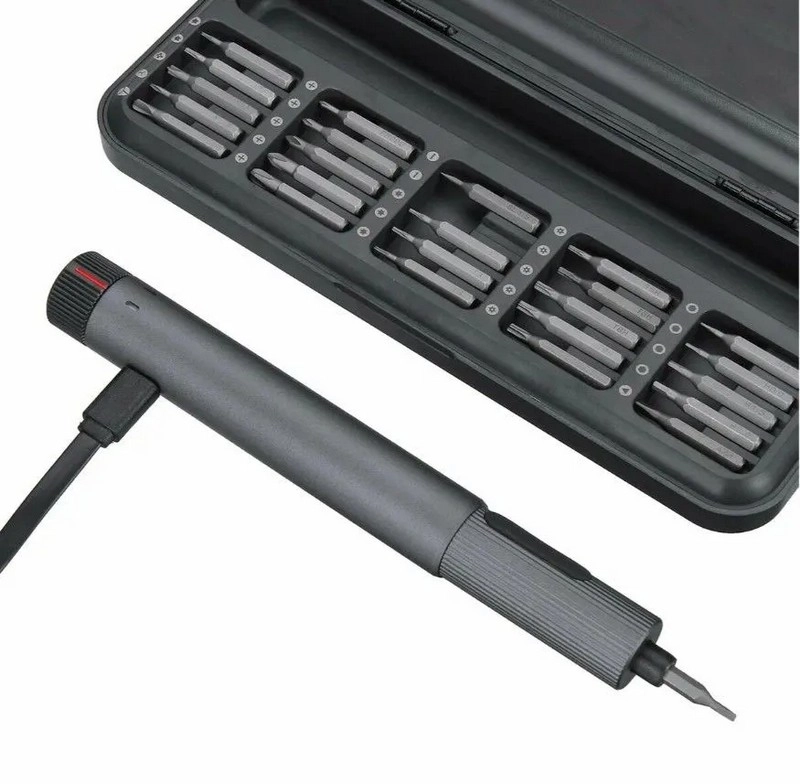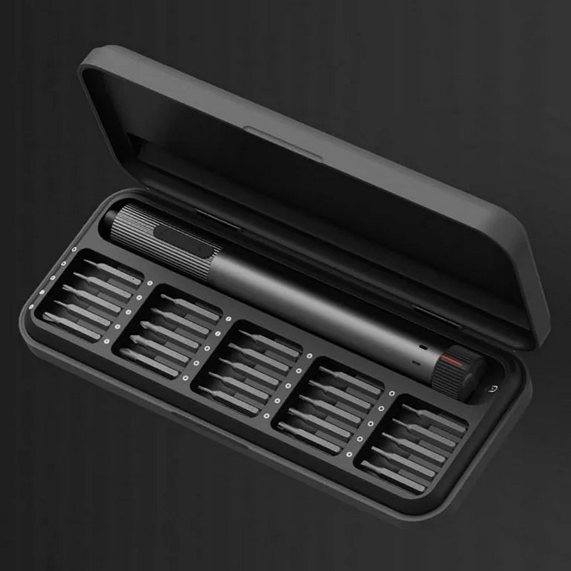 Электрическая отвертка ATuMan Duka E2 Electric Precisoon Screwdriver Set 25 in1 — набор, в который входит электрическая отвертка, 25 бит и кейс для хранения. Предназначен для мелких ремонтных работ, может использоваться, как с электродвигателем, так и в качестве ручного инструмента.