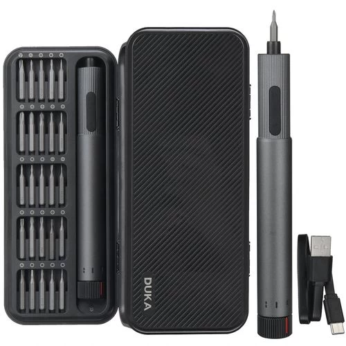 Электрическая отвертка ATuMan Duka E2 Electric Precisoon Screwdriver Set 25 in1 — набор, в который входит электрическая отвертка, 25 бит и кейс для хранения. Предназначен для мелких ремонтных работ, может использоваться, как с электродвигателем, так и в качестве ручного инструмента.