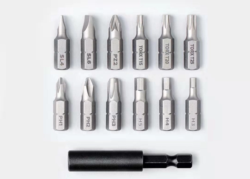 В комплекте с шуруповертом поставляются винтовые биты из легированной стали (12 шт), используемые с 60 мм удлинительной планкой.