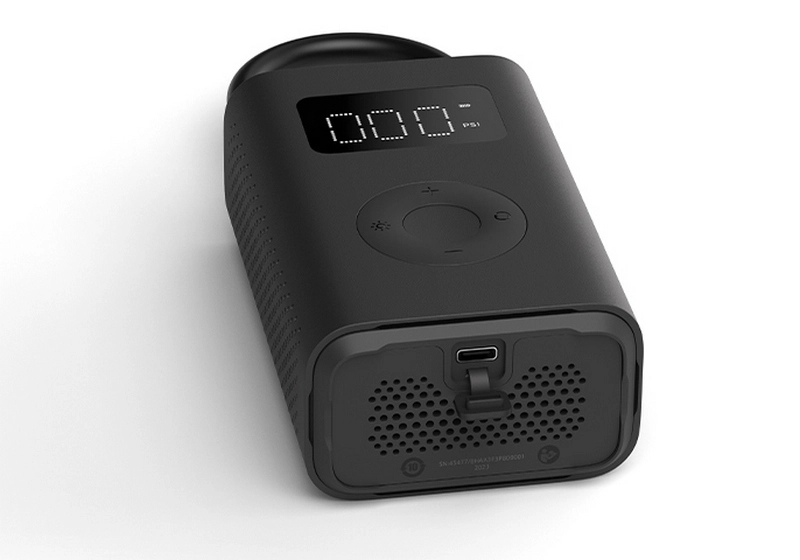 Mijia Electric Pump 2 оснащен встроенным LED-дисплеем на котором в режиме реального времени отображается давление в шинах, а универсальный Type-C разъем для зарядки позволяет заряжать насос везде.