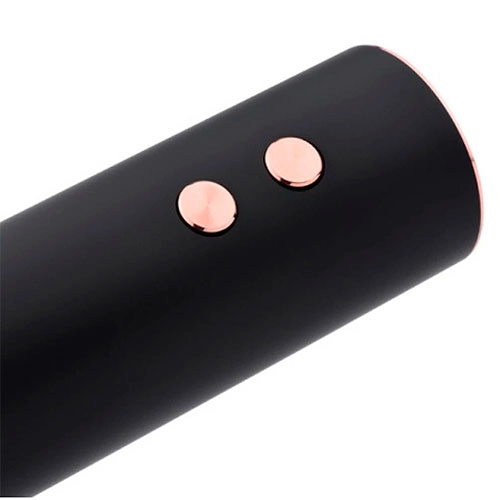 Электронный штопор устроен максимально просто — всего 2 кнопки отвечают за открытие бутылки и реверс, снимающий пробку со штопора.