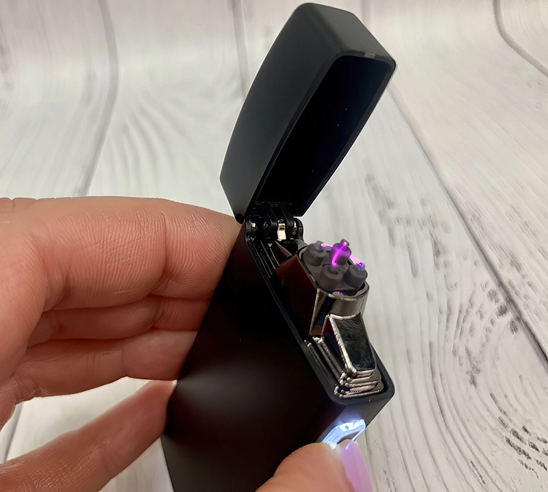 На боковой грани зажигалки светятся индикаторы, отображающие оставшийся уровень заряда.