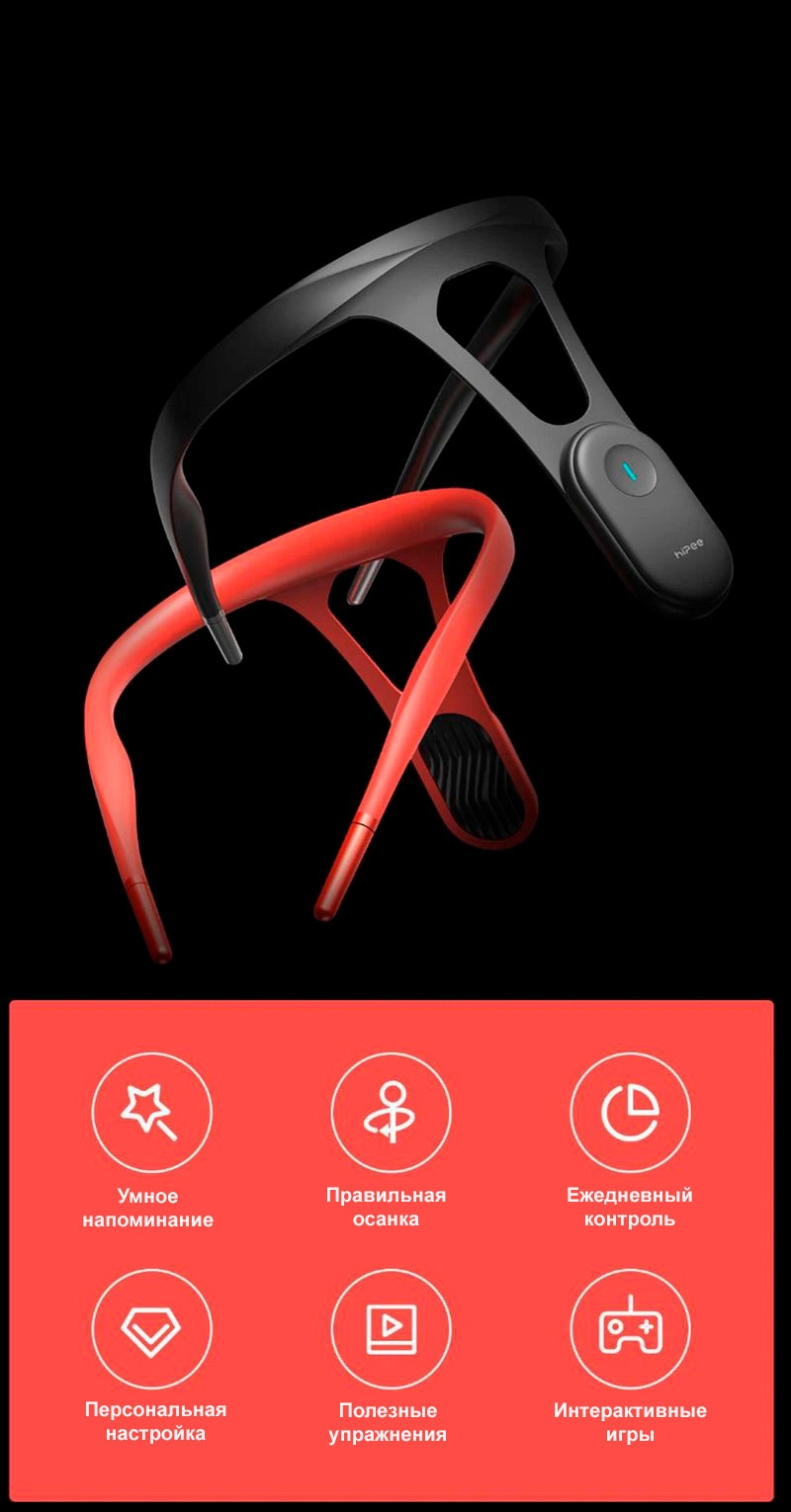 Электронный корректор осанки HIPEE Smart Posture Corrector Wizard — предназначен для естественного формирования осанки. В отличие от традиционных корректоров осанки, которые берут нагрузку на себя и не задействуют мышцы, корректор от HIPEE напоминает пользователю о необходимости держать спину прямо.