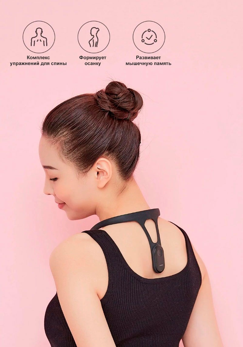 Корректор осанки работает в паре с приложением HIPEE и обучает специальным упражнениям, направленным на формирование осанки.