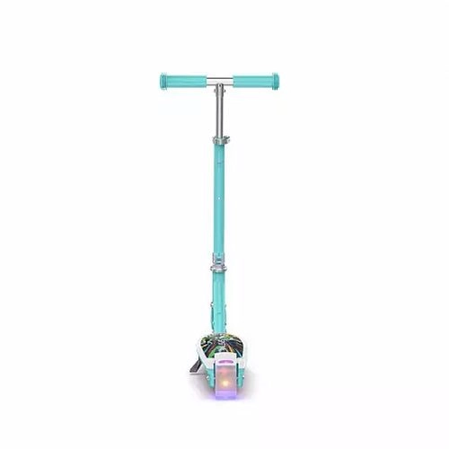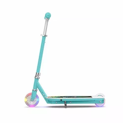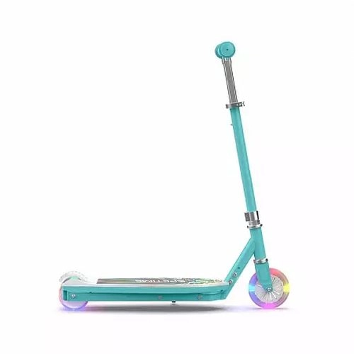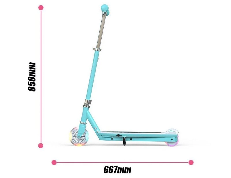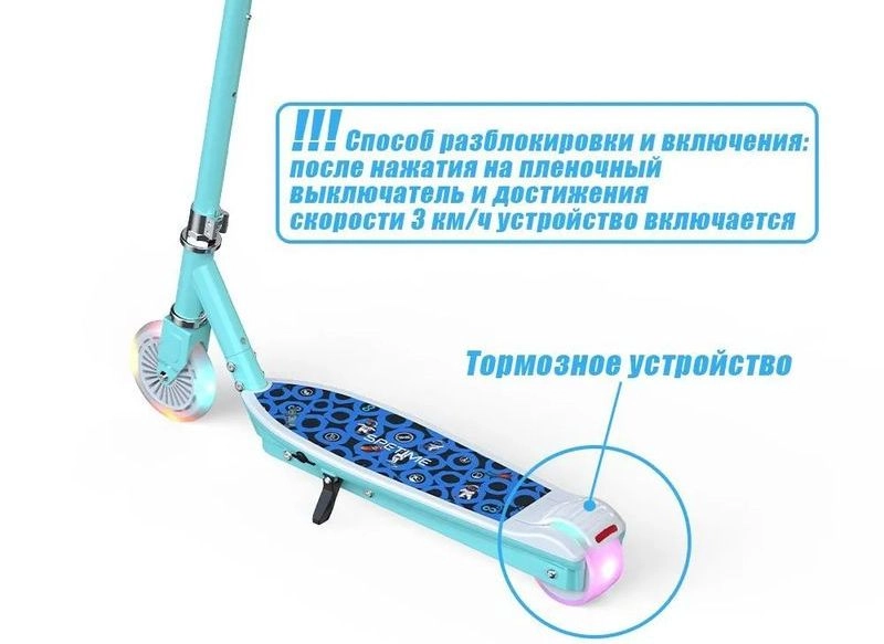 Заднее колесо оснащено встроенным двигателем мощностью 50 Вт, который включается при наборе скорости 3 км/ч и помогает в движении. Максимальная скорость самоката 8 км/ч.