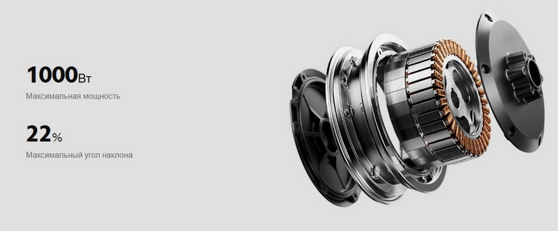 NAVEE GT3 Pro оснащён задним приводом и мотором мощностью 1000 Вт, что позволяет быстро разгоняться и преодолевать уклоны до 22%, обеспечивая стабильную и надёжную езду на любых дорогах.