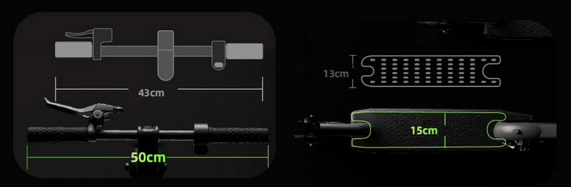 Увеличенный размер деки и руля позволяет с комфортом разместиться на электросамокате людям разной комплекции.