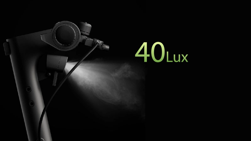 Передний фонарь светит с яркостью 40 люкс и широко освещает дорогу перед собой.