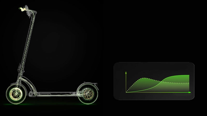 Рама электросамоката выполнена из алюминиевого сплава 6061, она выдерживает стабильную нагрузку до 100 кг.