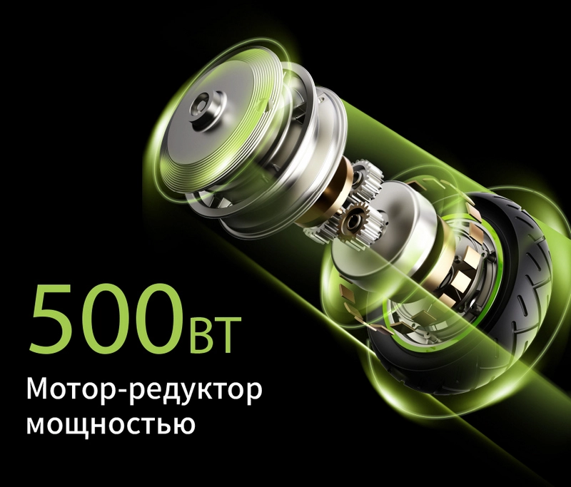 Двигатель с мощностью 500 Вт обеспечивает быстрый разгон и плавное движение с максимальной скоростью 25 км/ч.